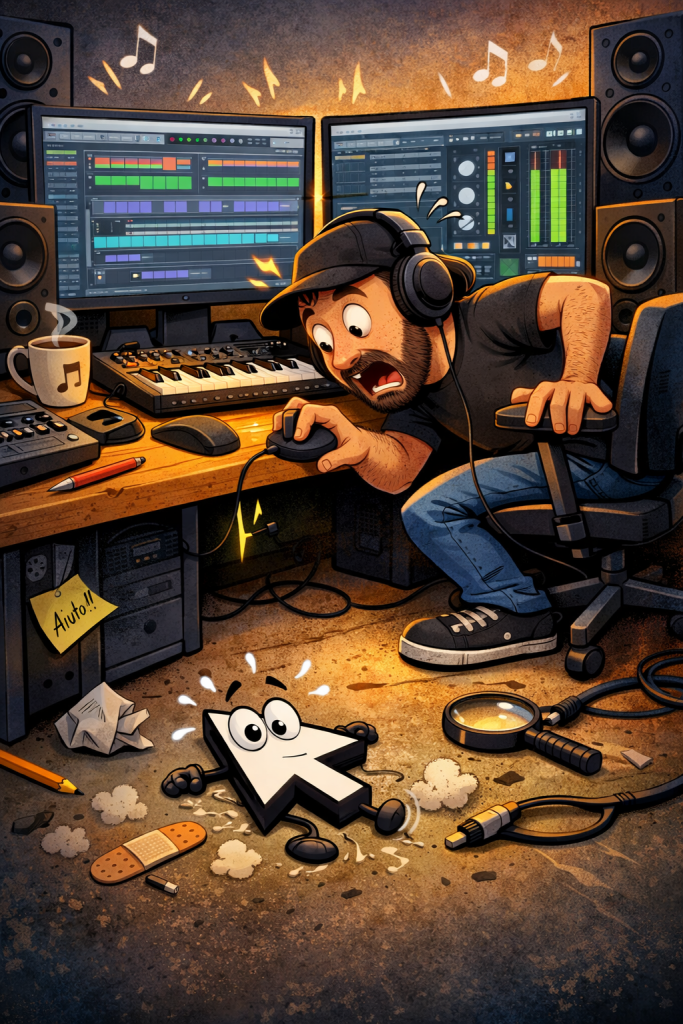 E in quel momento capisco una cosa importante: puoi avere plugin da migliaia di euro, una workstation pronta a spaccare i muri del condominio, due monitor “professionali” pagati quanto un affitto, la giornata tutta dedicata a produrre e rifinire… ma basta mezzo centimetro per trasformarti in un uomo che fissa il vuoto e si chiede dove cazzo sia finito il proprio cursore.